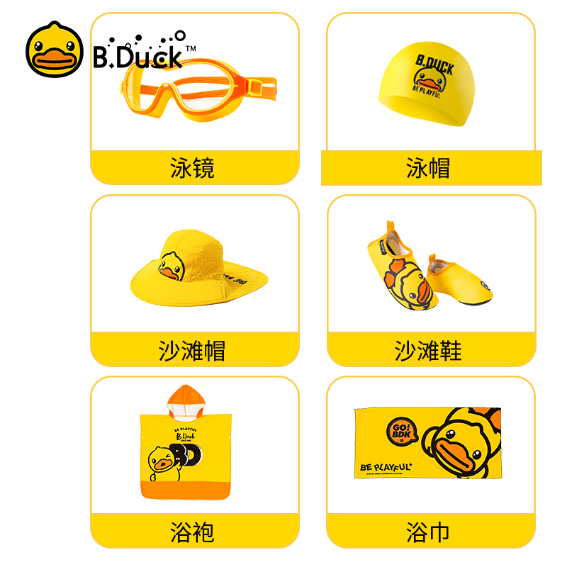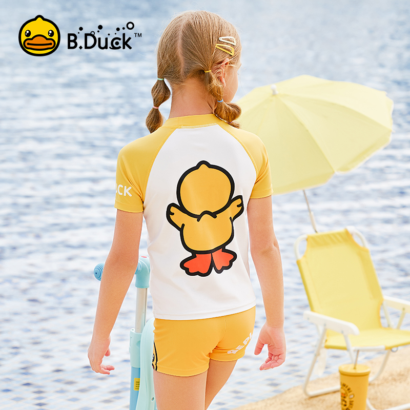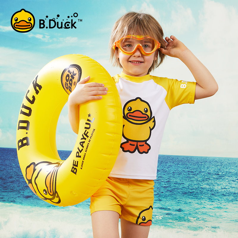 B Duck little yellow duck children's swimsuit boy swimming trunks little girl baby middle and older children hot spring swimming equipment complete set