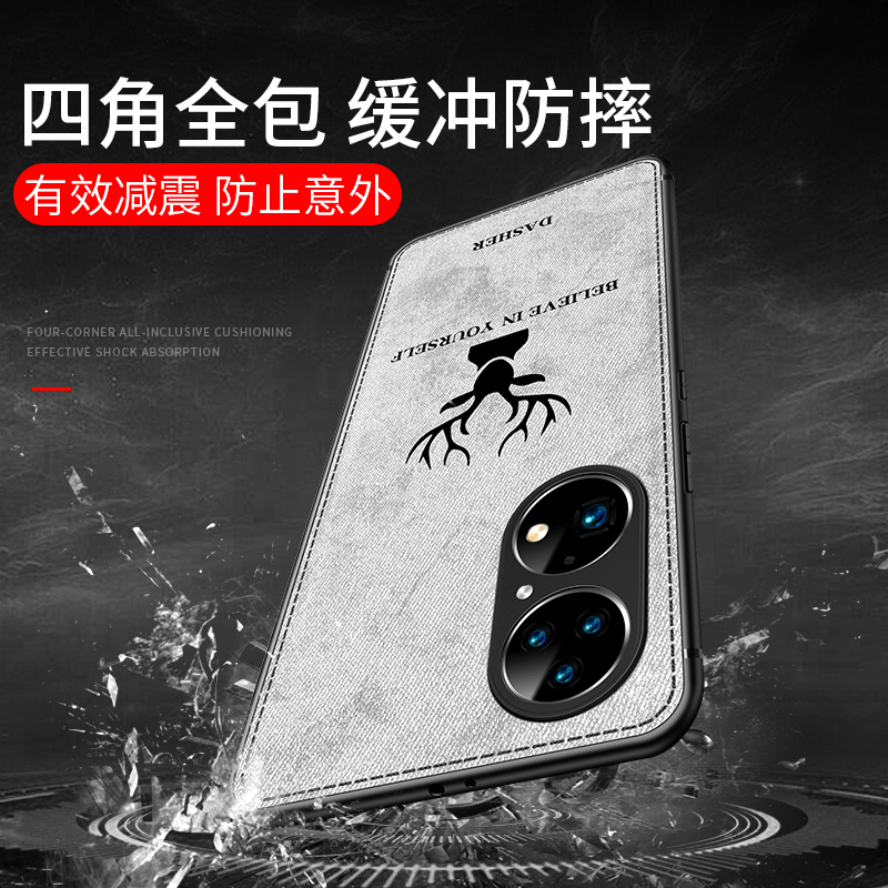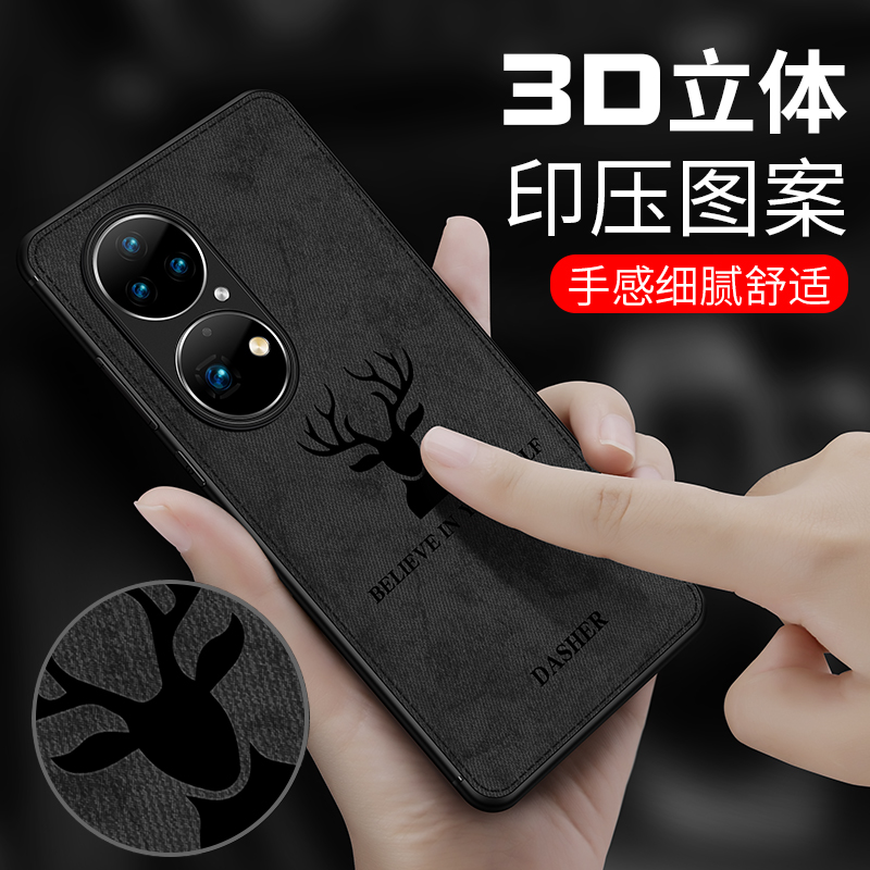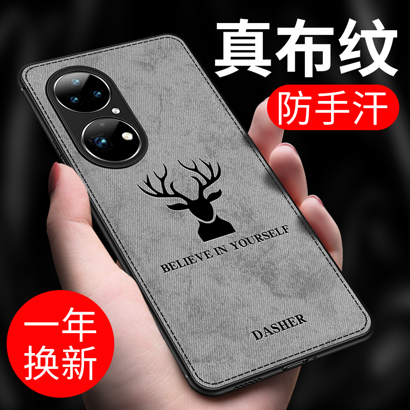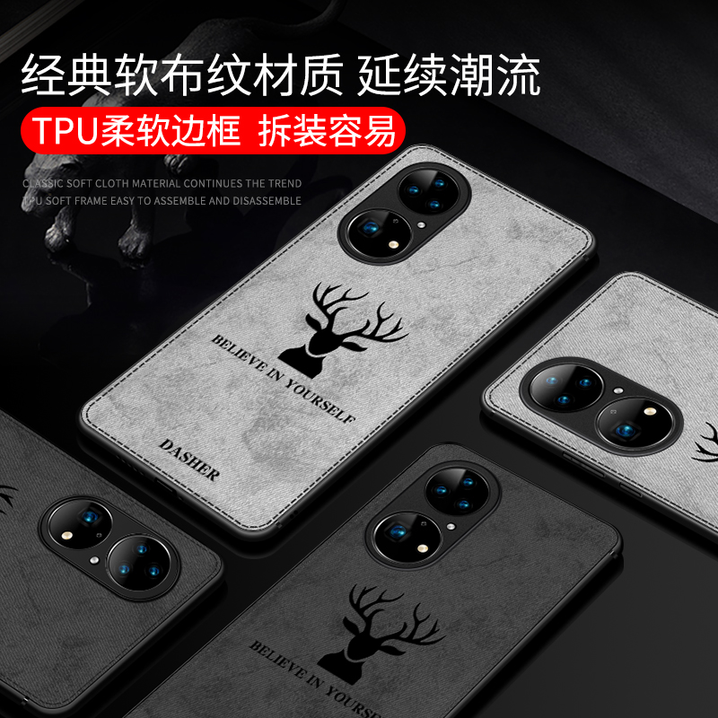 Huawei P50 (black deer head lens all-inclusive) real cloth pattern anti-hand sweat Huawei P50 (blue deer head lens all-inclusive) real cloth pattern anti-hand sweat Huawei P50 (gray deer head lens
