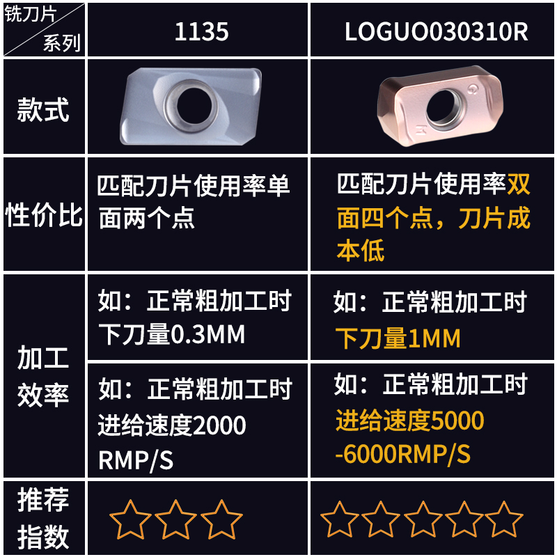 CNC double-sided rough fast feed milling blade LOGU030310ER knife grain Kyocera same MFH03R milling cutter rod