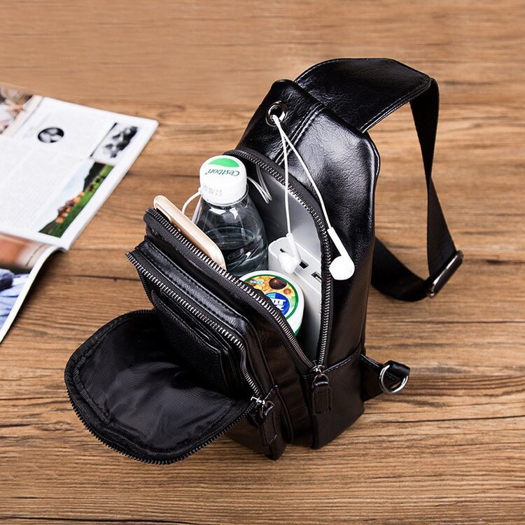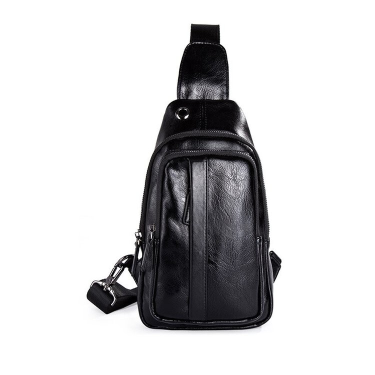 Fashionable all-match black diagonal men's chest bag summer waterproof soft leather shoulder Korean casual street small shoulder bag tide