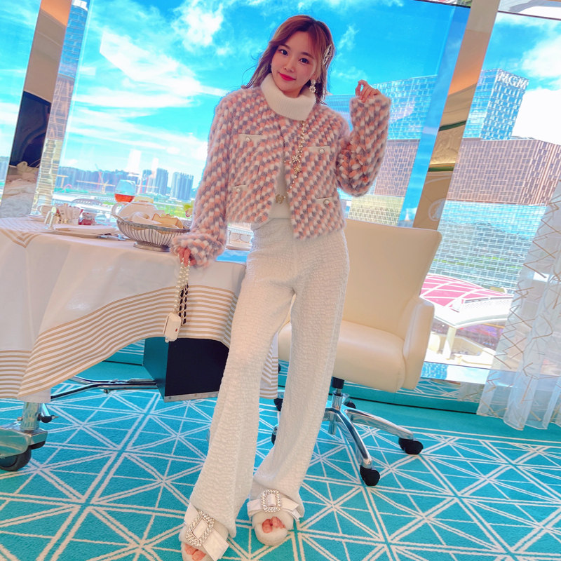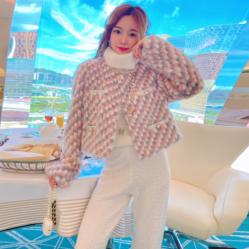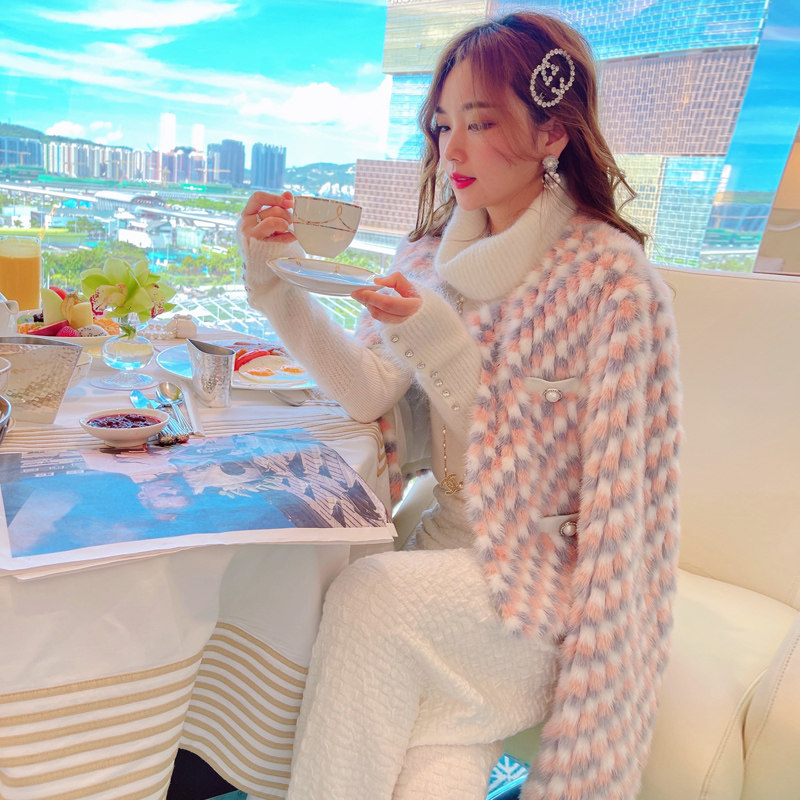 MissLuxury "Fairy Mink" Natural Fur Coat Women's New Contrast Color Ladies Small Fragrance Short Mink