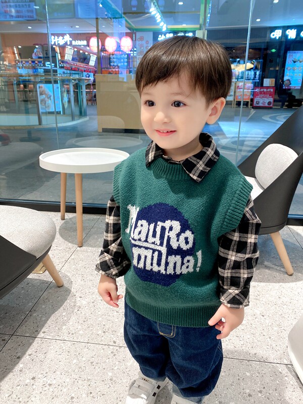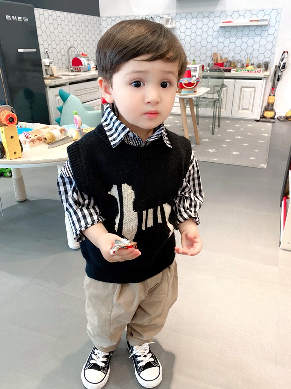 Fried Chicken Cute ~ Double Sided Jacquard Baby Cartoon Knit Back Hearts Boy Boy Spring Fall Gross Line Horse Chia Tide