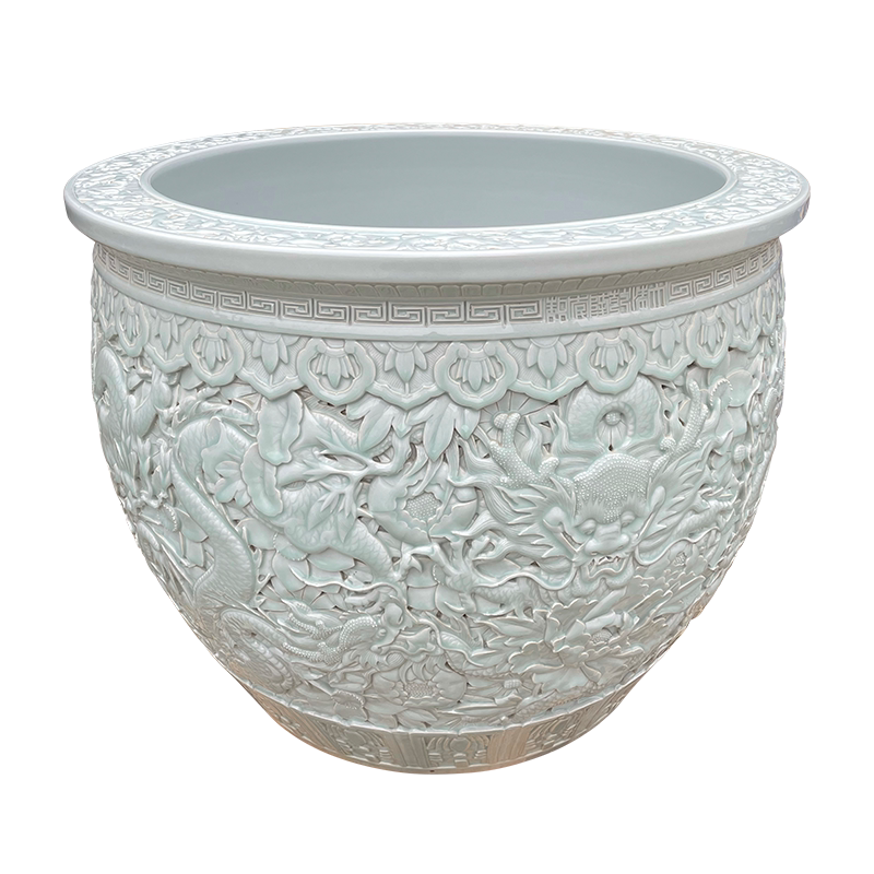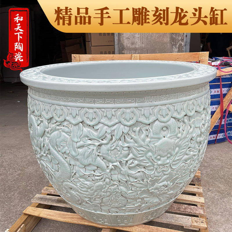 Garden water tank Jingdezhen master carving faucet fish tank 1m extra large ceramic tank factory produced lotus tree tank