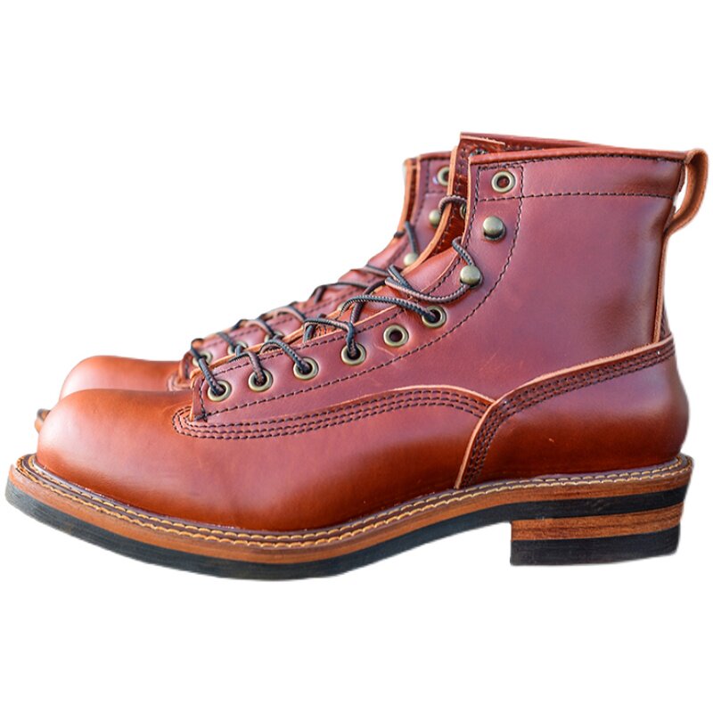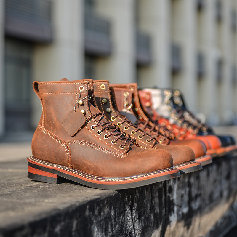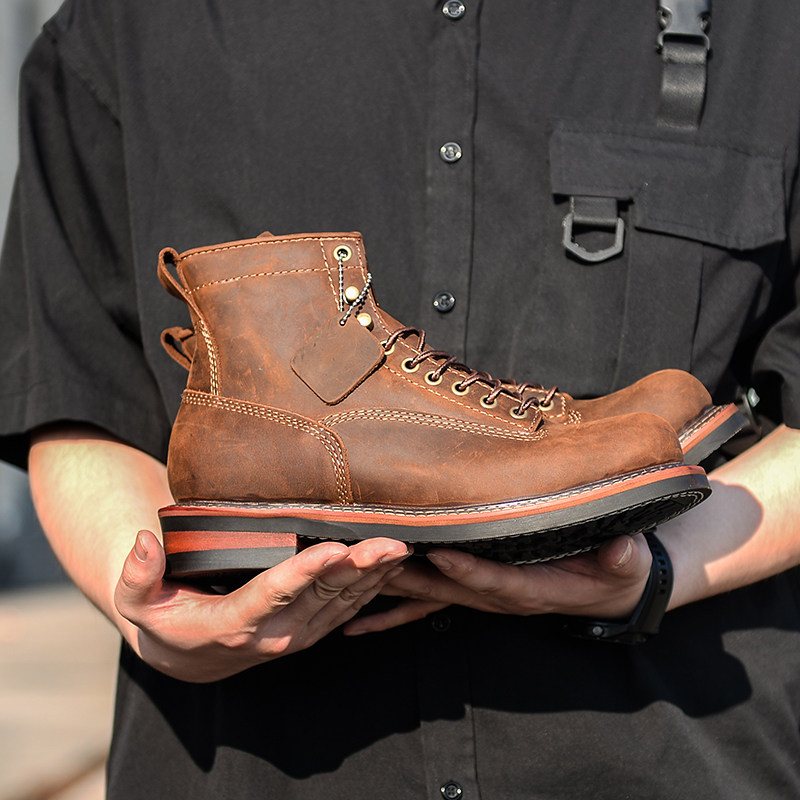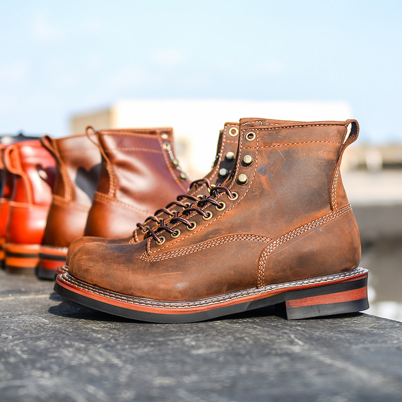 Ammerclick Gooey Goodyear Round Tooling Boots American Retro Martin Boots Couple Heads Layer Bull Leather Short Boot Locomotive Boots
