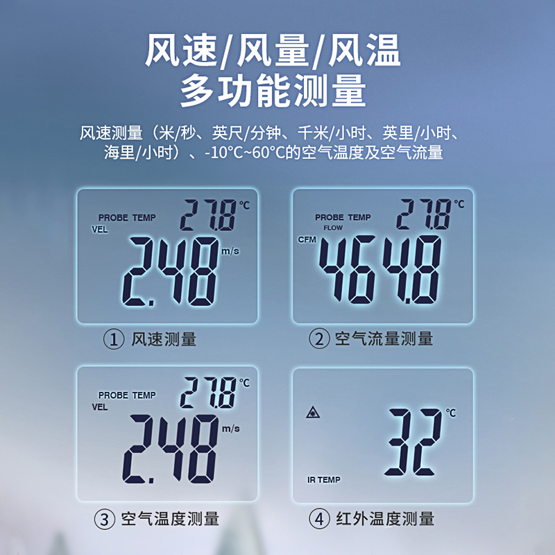 CEM Changchong high-precision wind speed tester DT618 multifunction handheld digital air volume wind temperature anemometer