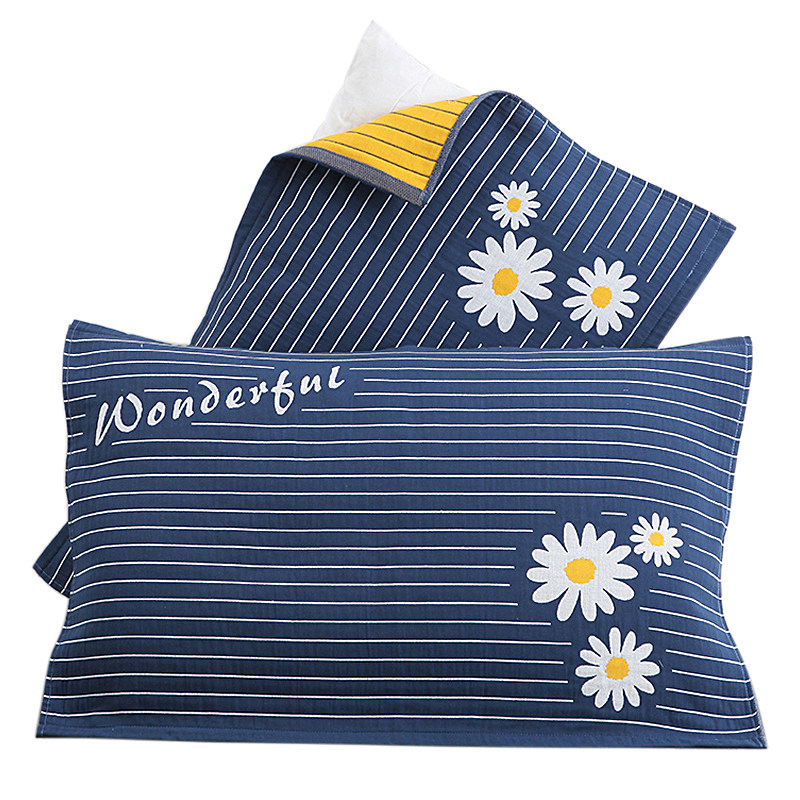 (Pack of 2) Gold number pure cotton four-layer seersucker gauze pillow towel cotton European-style soft household pillow towel pair