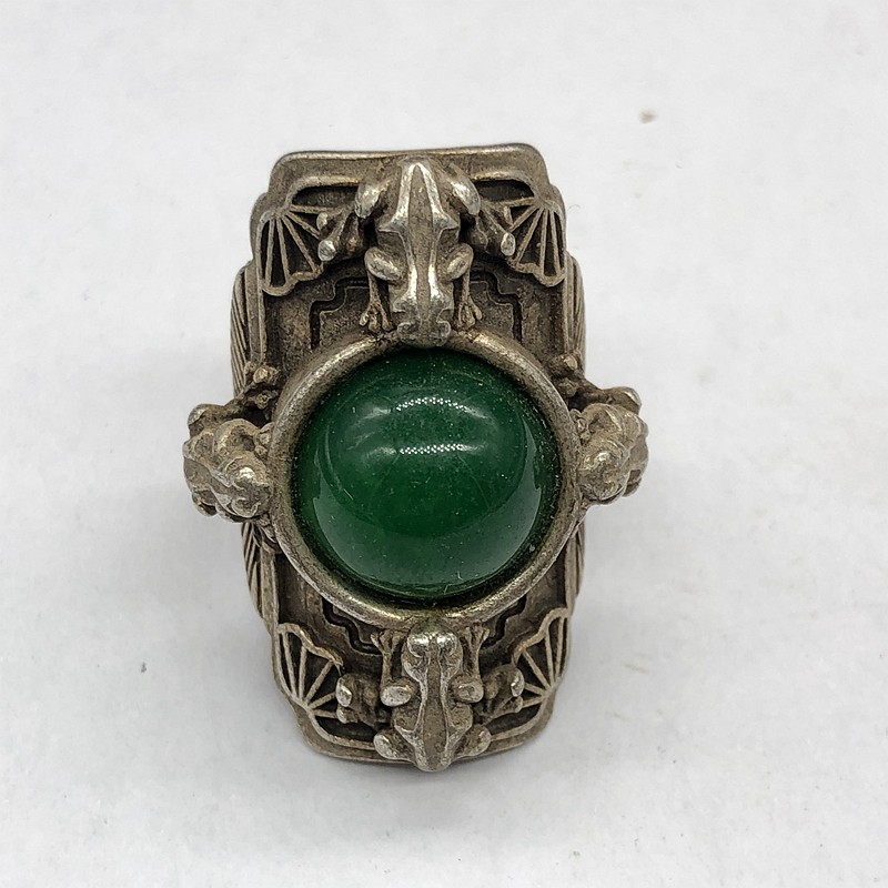 Ancient playing miscellaneous collection of antique Great Qing Qianlong New Year's Frog Gem Ring
