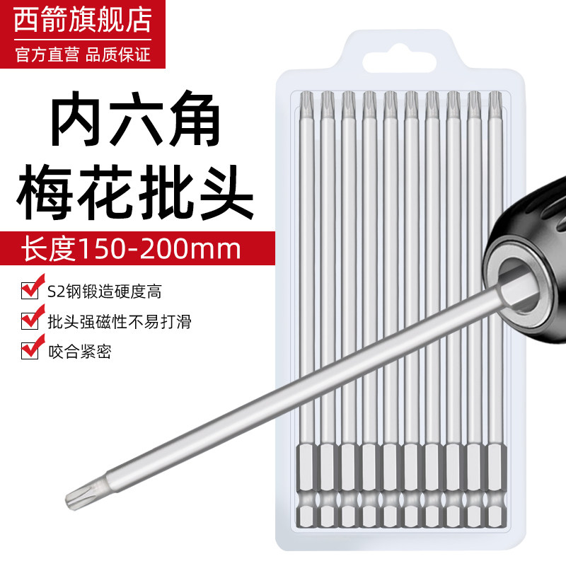 Lengthened wind batch plum-shaped head 50200 long pneumatic hexagonal shank screwdriver wrench Batch head T5 T10 T25 T25 -Taobao