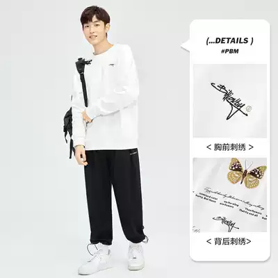 Taiping bird men's round neck thick cotton T men's 2021 autumn new color color embroidery loose sweater men's coat