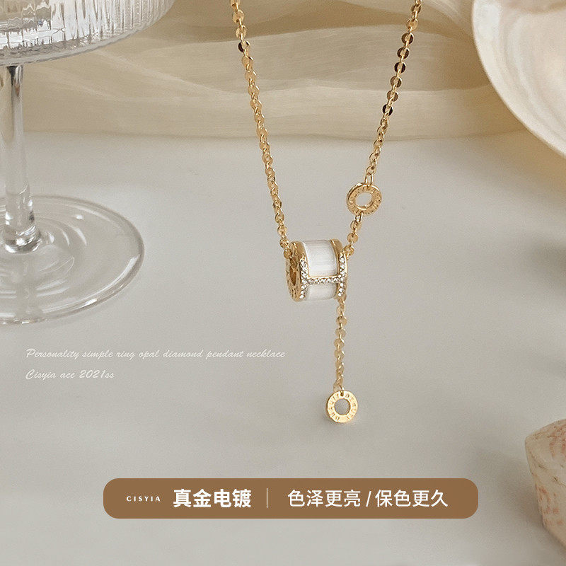 Korean small waist opal necklace women's light luxury niche high-end clavicle chain does not fade 2022 new trend