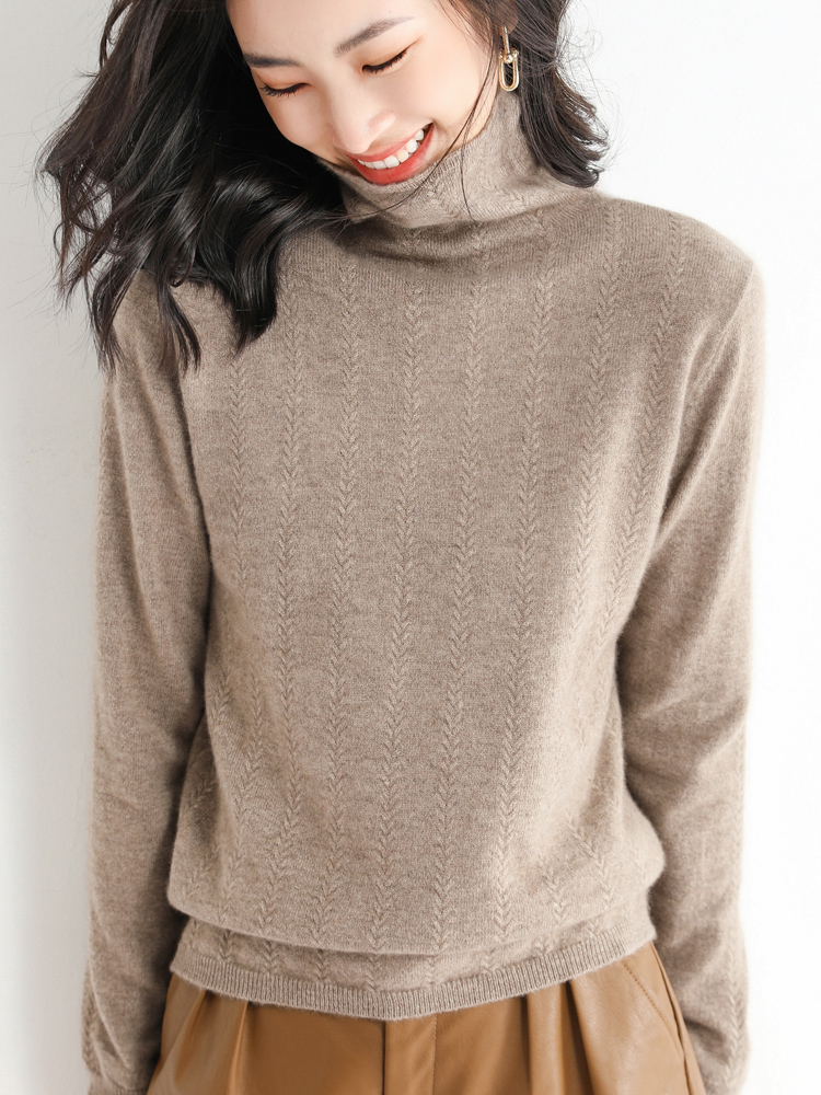 High collar knit undershirt woman 2021 autumn winter new 100 hitch set head pure color high collar loose long sleeve sweater