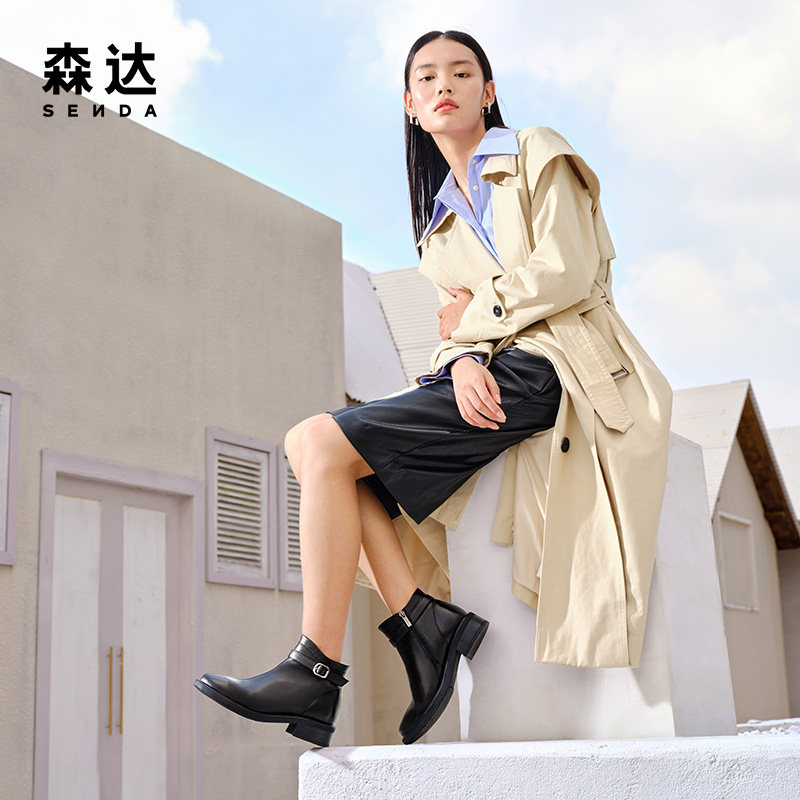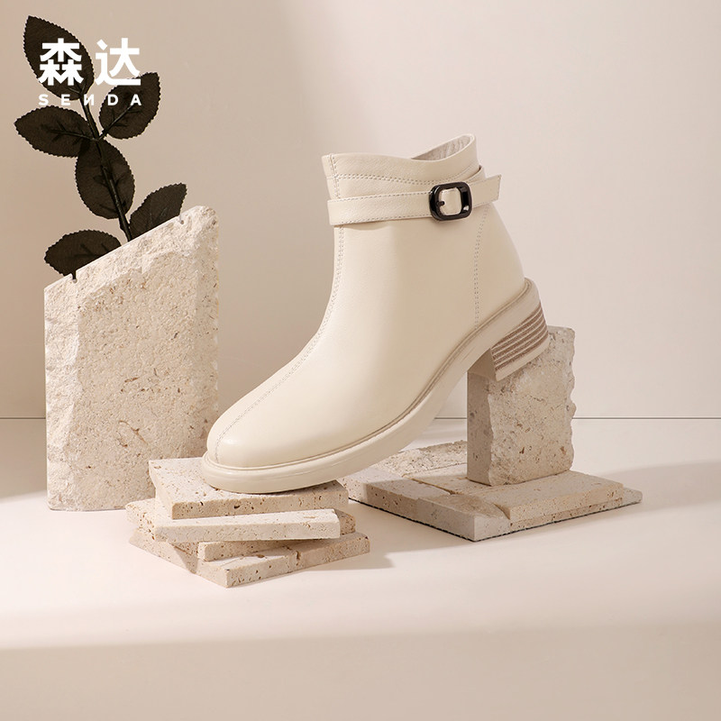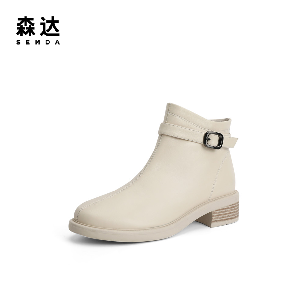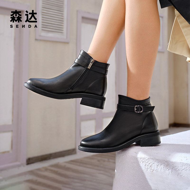 Senda Dong new belt buckle British plus velvet block heel boots round toe leather boots women's boots Z0726DDD1