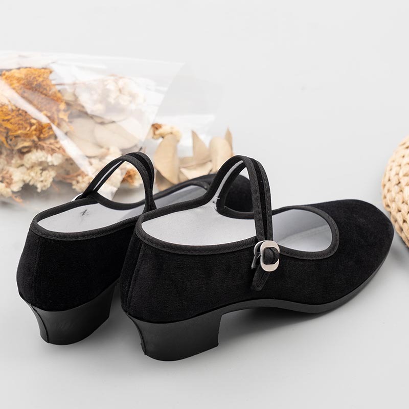 Ethnic dance shoes group performance high-heeled Tibetan black dance heels verification test special female folk with heel cloth shoes