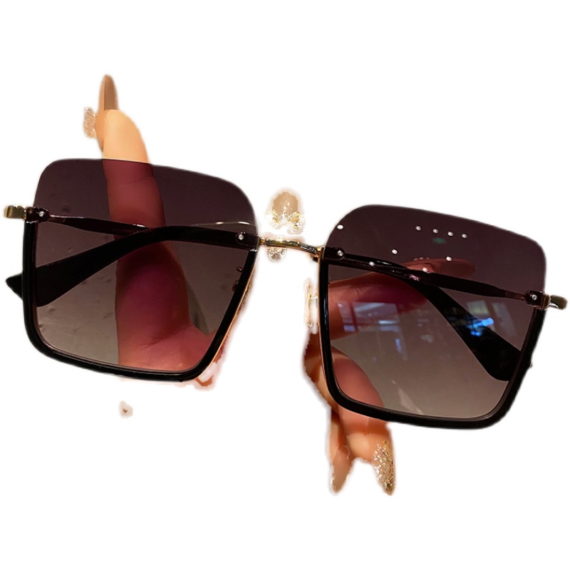 Cence Kaer Hua Yanyue Appearance ~ black large frame sunglasses women's square round face thin anti-UV sunglasses