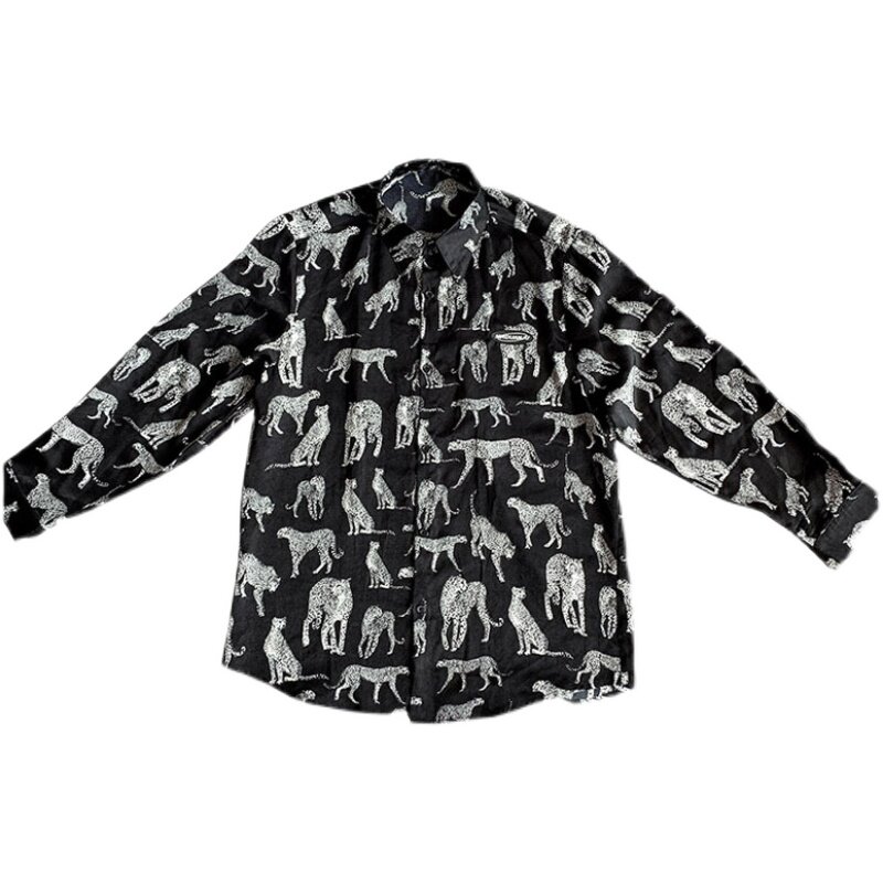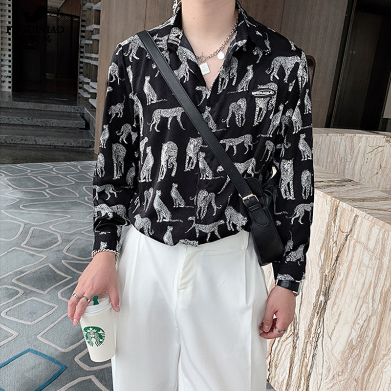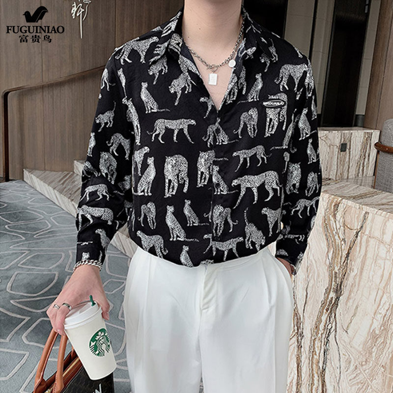Fugui bird outside wearing shirt male summer thin loose ice silk printing design feeling small and light cooked style Spring and autumn men's clothing