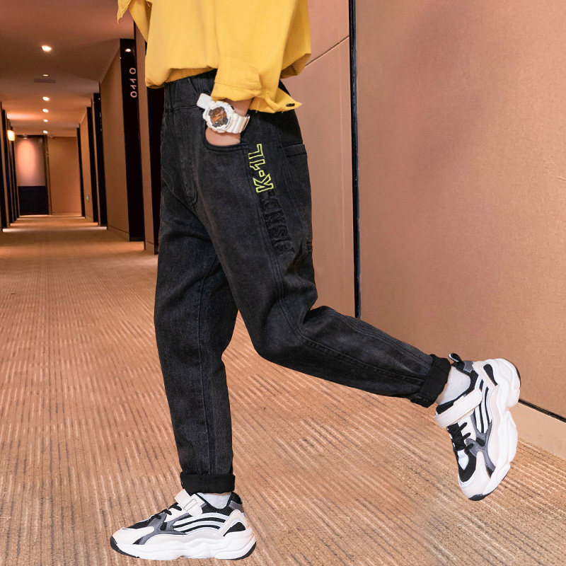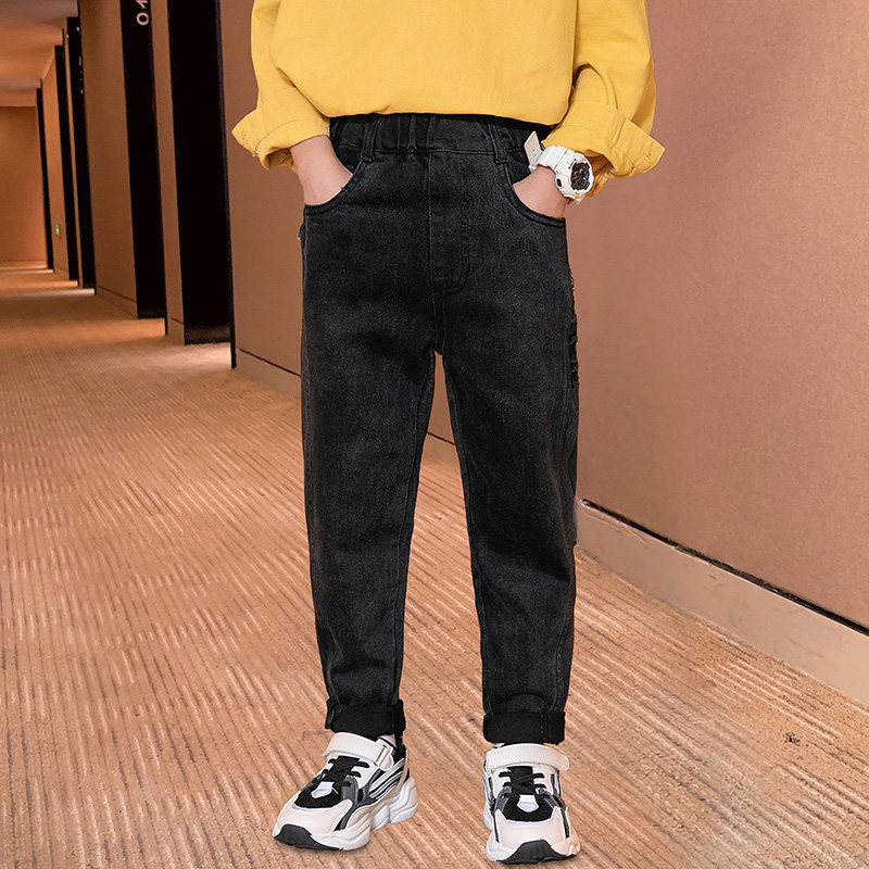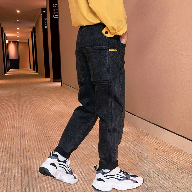 Boy gush pants autumn winter style 2023 new children jeans thickened integrated suede mid-winter cotton pants-Taobao