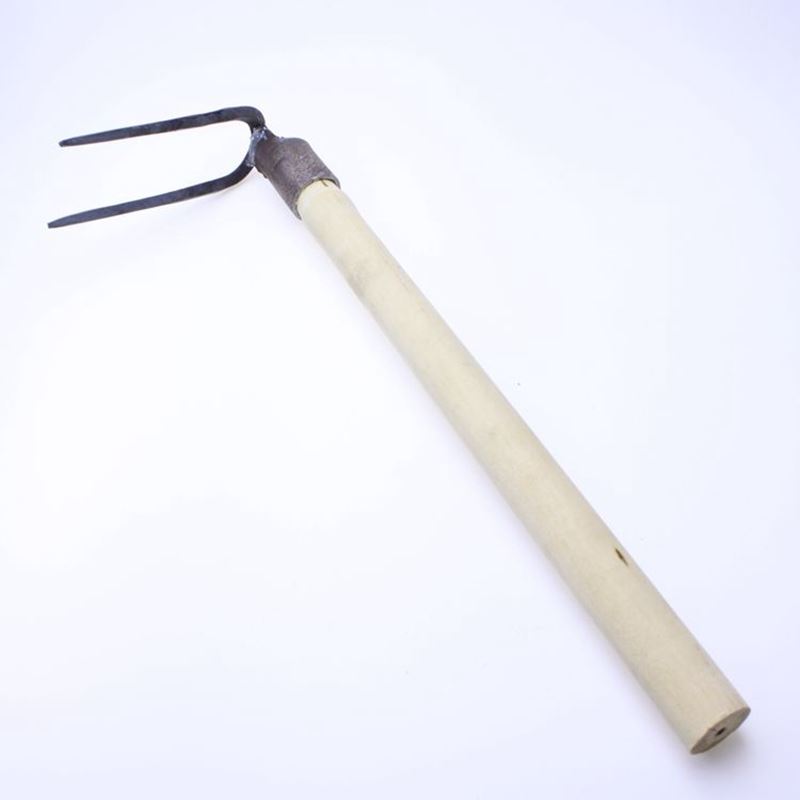 Small two-tooth rake (no handle) small two-tooth rake mounted 30 cm wooden handle small two-tooth rake mounted 50 cm wooden handle small two-tooth rake mounted 80 cm wooden handle small 1 2 m wood handle