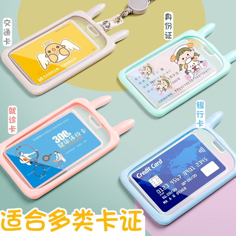 Cutting card student campus bus meal card access control transparent soft work card certificate work certificate with hanging rope nucleic acid code health code breast card protection protective sleeve citizen card kindergarten pick up card bag hanging neck