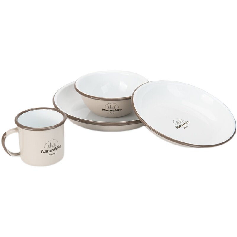 Naturehike outdoor picnic tableware portable enamel water Cup Bowl plate set camping picnic barbecue supplies
