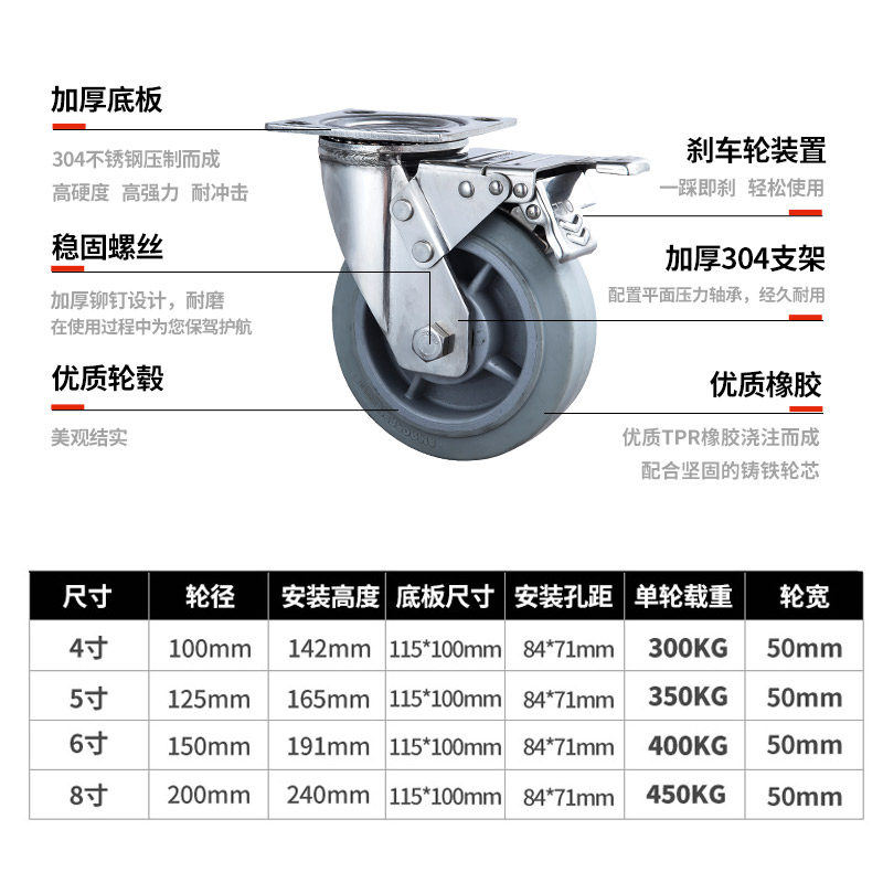 Heavy-duty universal wheel small trolley stainless steel caster pulley mute fixed steering wheel complete load-bearing wheel