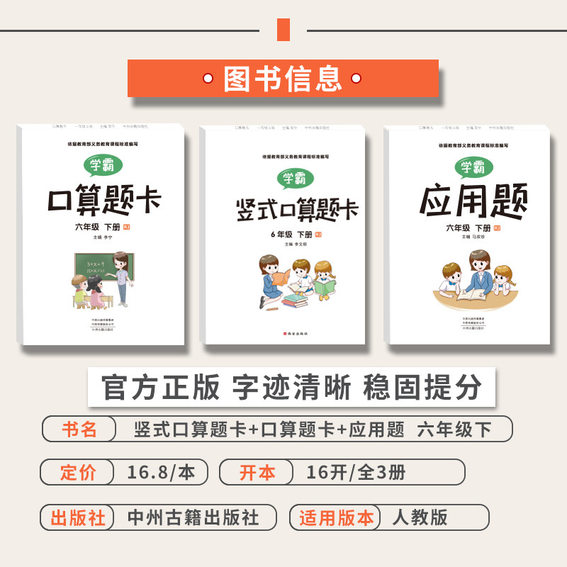 Douyin with the same paragraph sixth grade second volume Xueba oral calculation question card application question vertical calculation full set of 3 main parts RJ version sixth grade mathematics oral calculation quick calculation thinking strengthening synchronous training 100 daily practice every day
