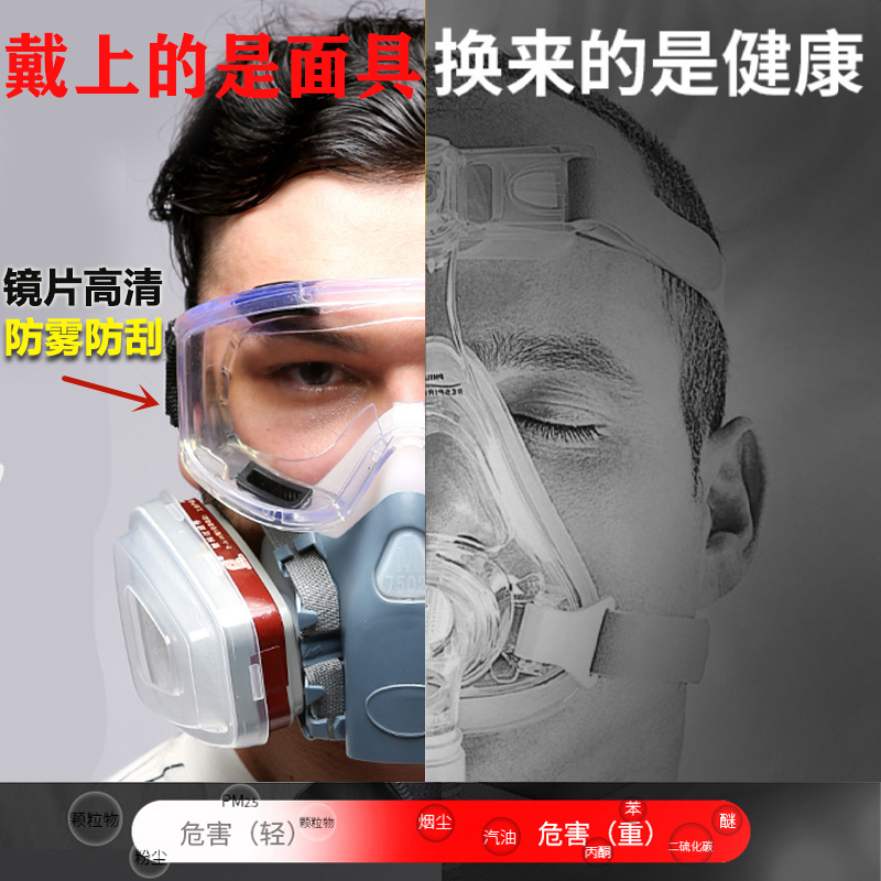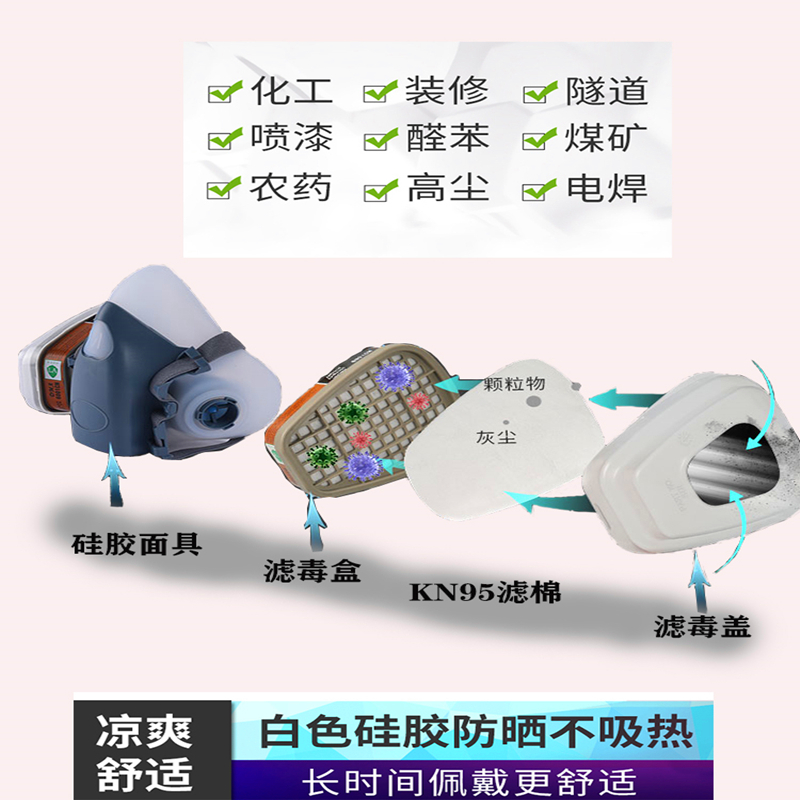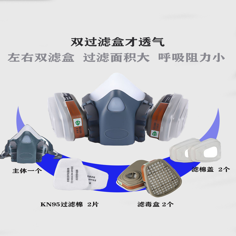 Silicone dust mask 7-piece set Silicone dust-proof gas mask 7-piece set Anti-fog big eye mask Silicone dust-proof gas mask 7-piece set Collect 10 high-efficiency KN95 filter cotton Silicone dust-proof gas mask