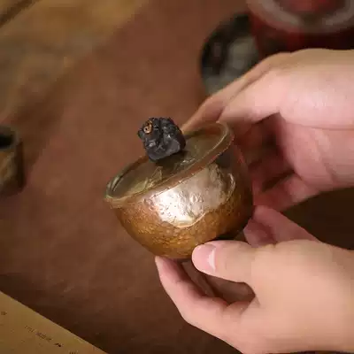 Handmade hammered copper wake-up tea cans gilded silver Pu'er tea black tea small tea cans retro tea warehouse wake-up tea with lid
