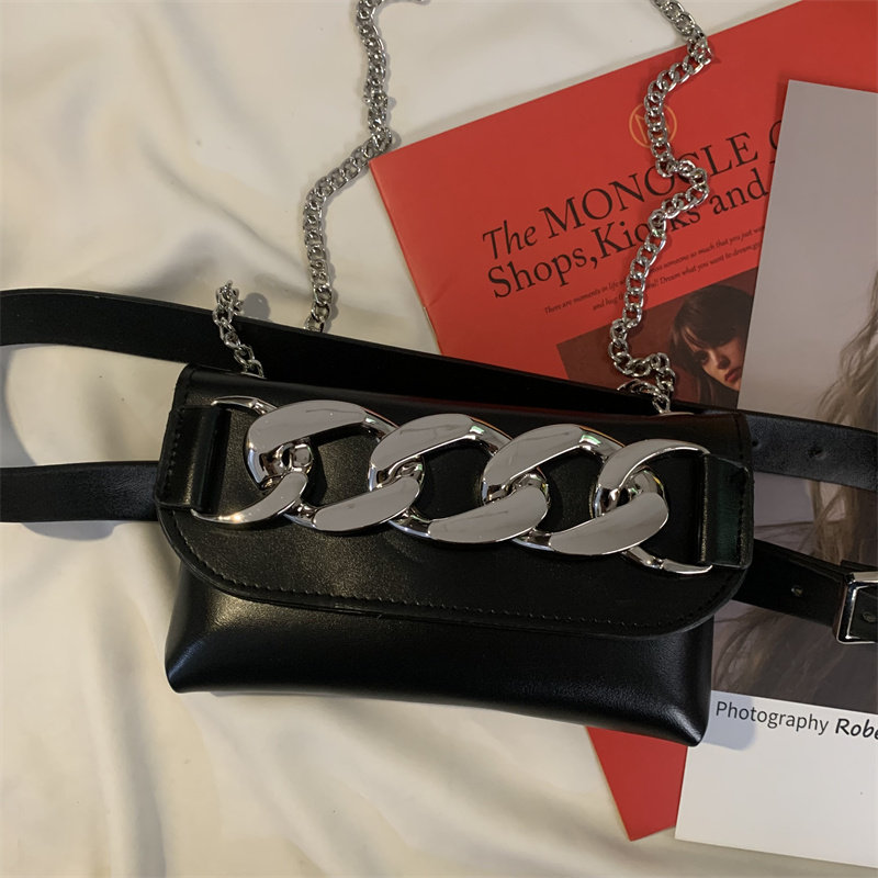Summer small bag 2021 new metal chain messenger bag Korean version fashion all-match belt bag belt mobile phone bag