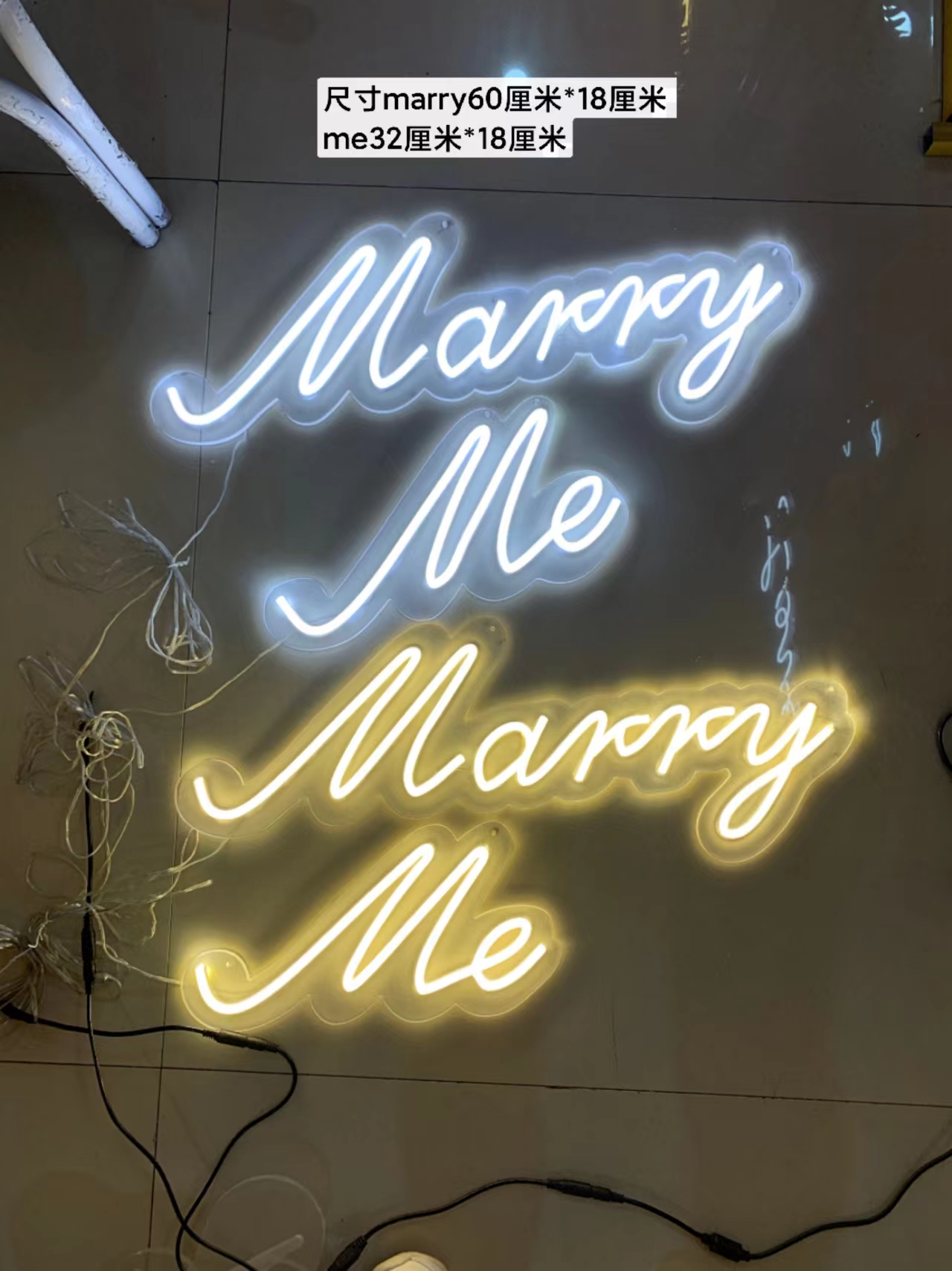 Plug and battery dual white light with white letter marry me neon light