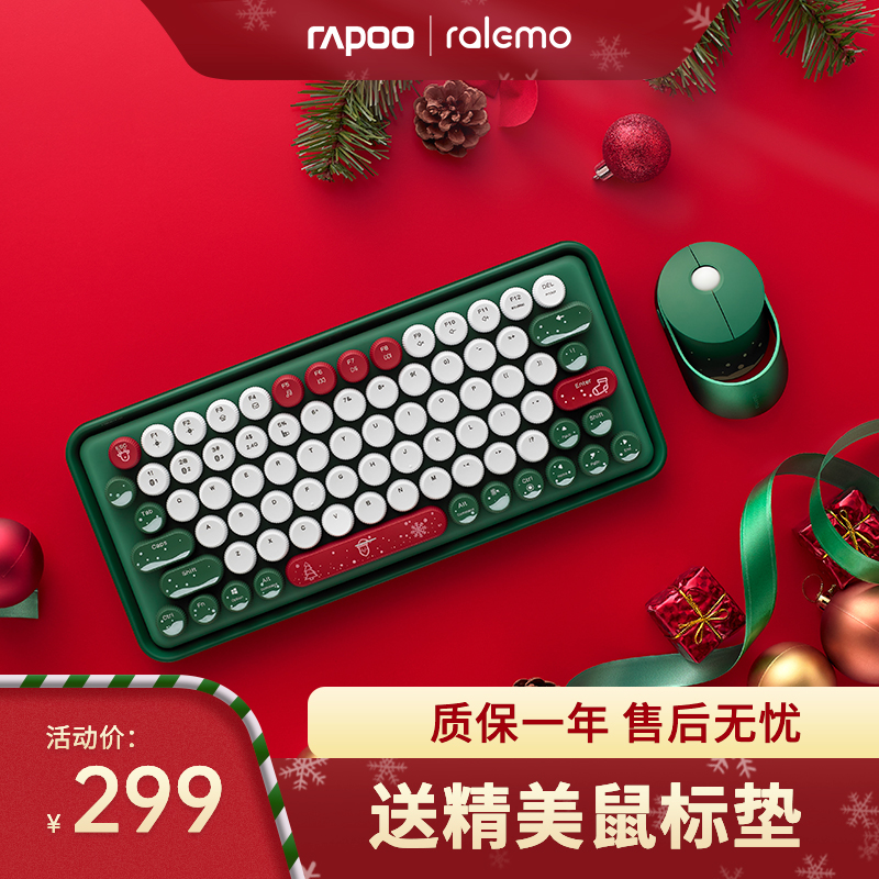 Rapoo ralemo Christmas custom version wireless bluetooth mechanical keyboard mouse set female office mute three-mode