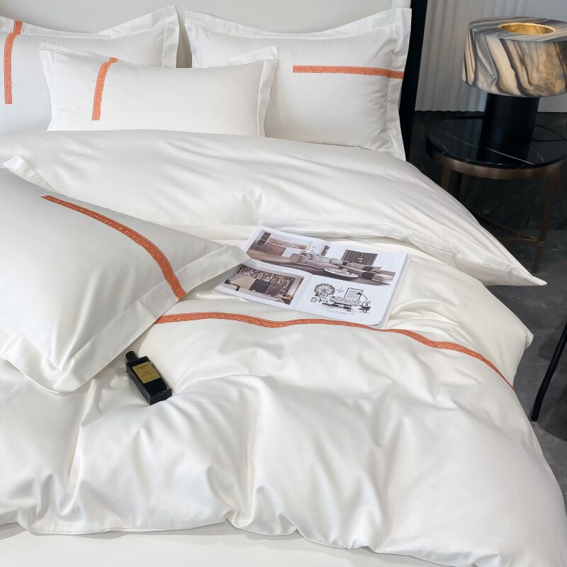 High-end 140 long-staple cotton four-piece sets of cotton pure cotton A class mother and baby embroidery naked sleeping sheets quilt cover bedding