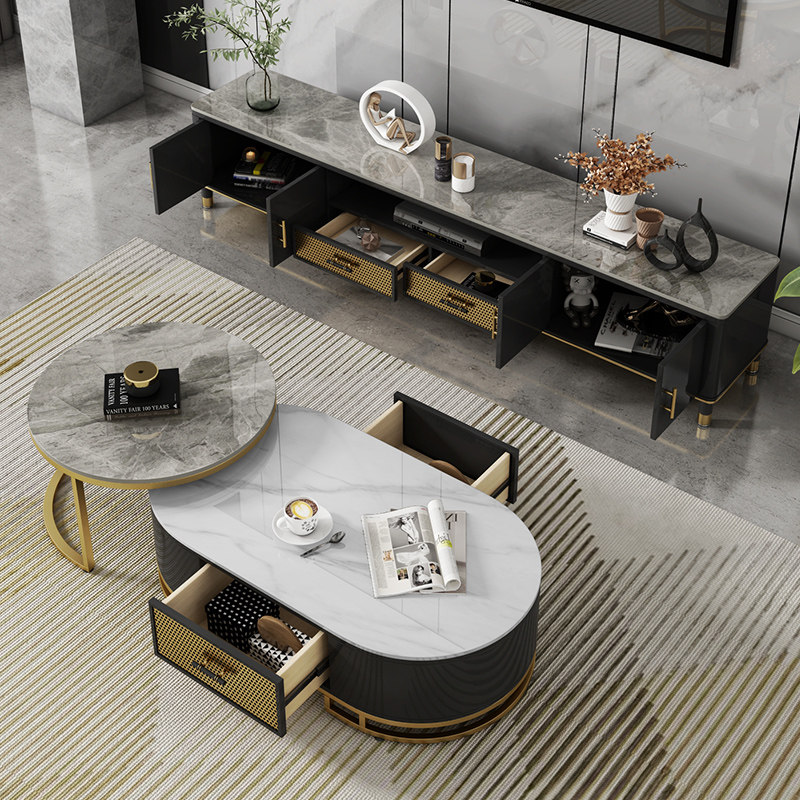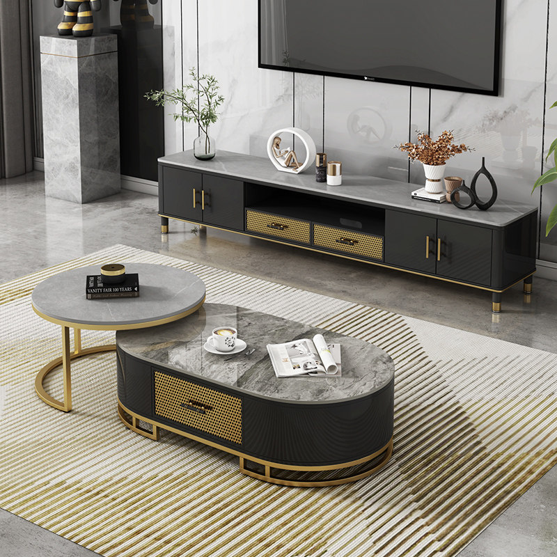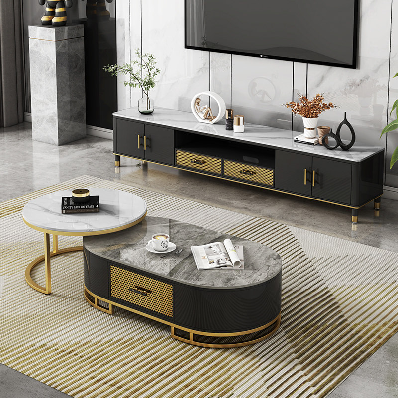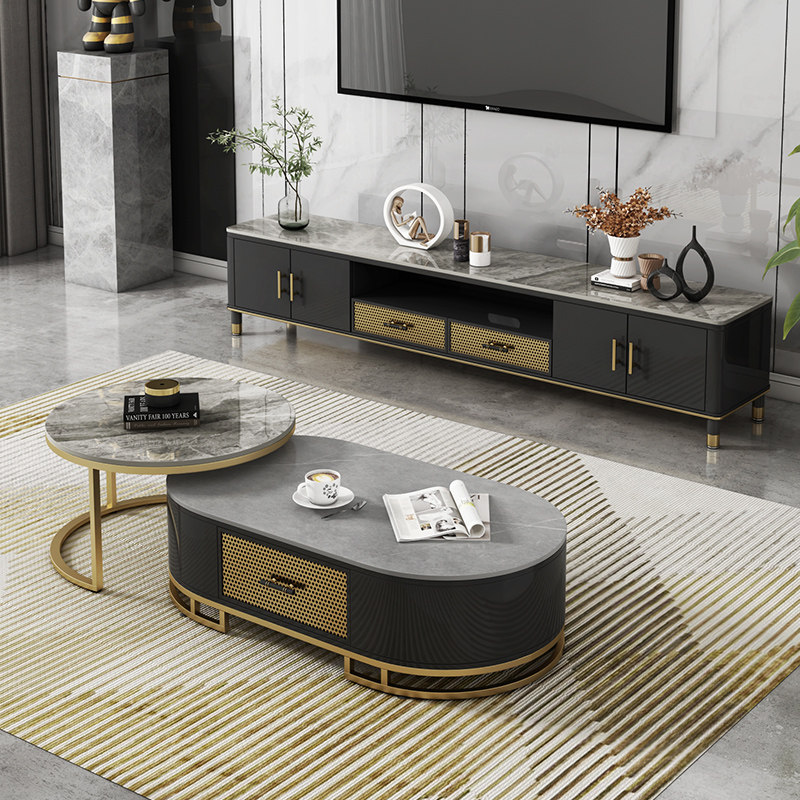 Rock slab tea table TV cabinet combination modern minimalist small apartment living room light luxury style net red multi-functional TV cabinet