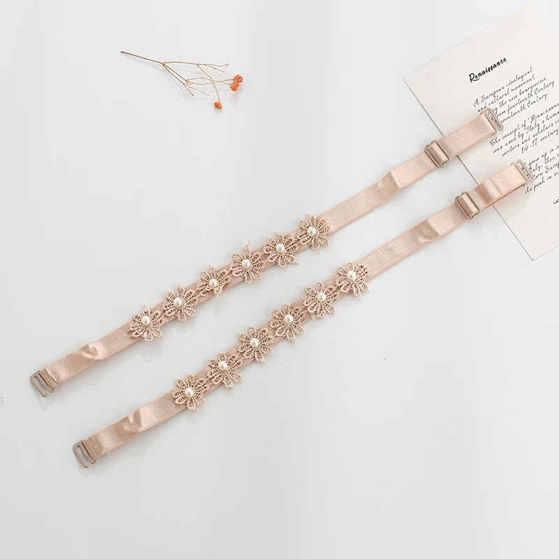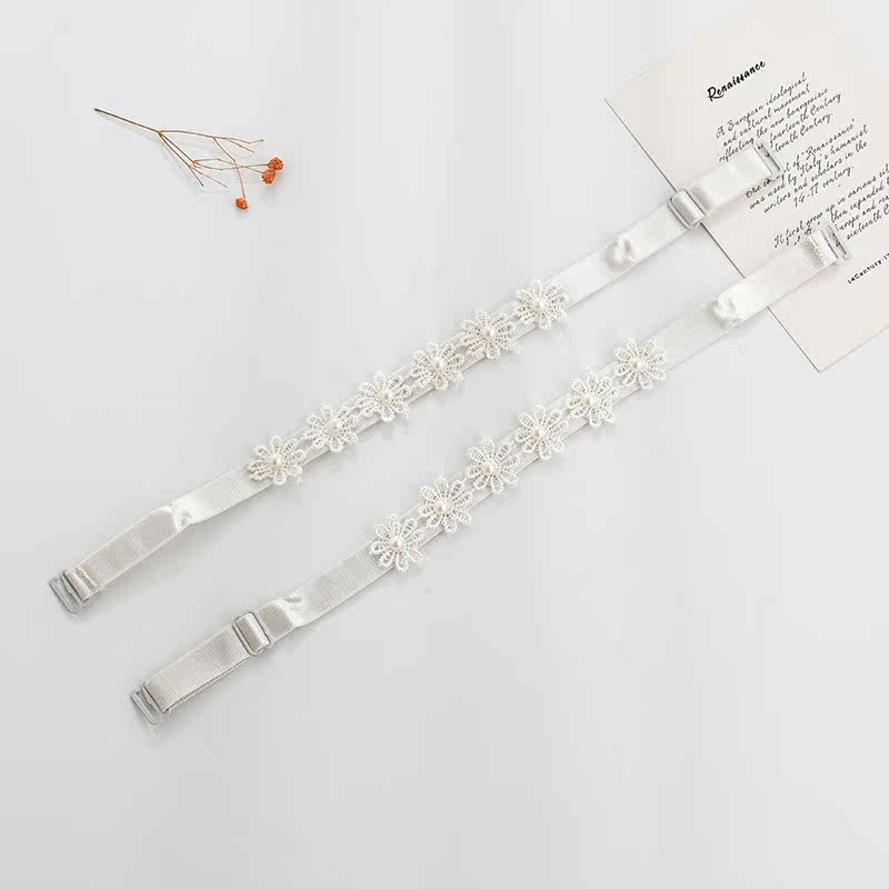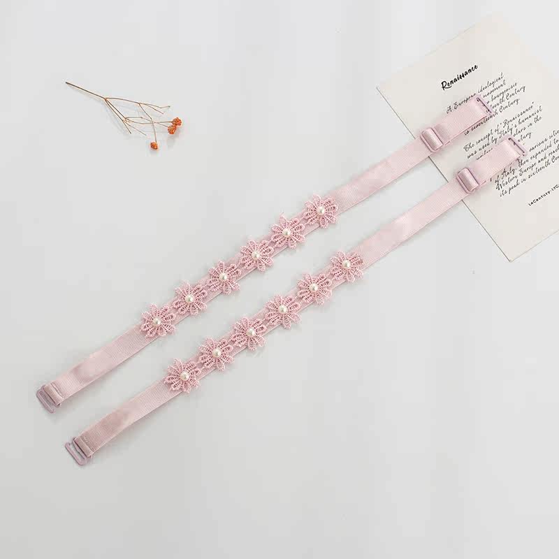 All-match lace embroidered beautiful shoulders sexy pearl underwear shoulder straps a word collar non-slip bra accessories buy 2 pairs get 1 pair