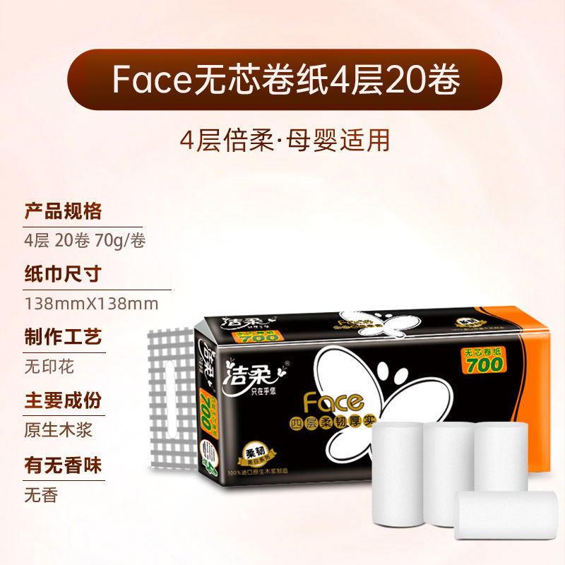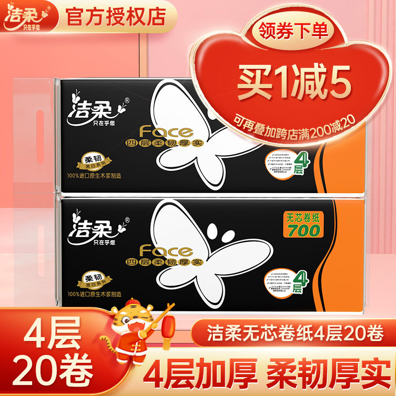 Clean and soft toilet paper toilet paper thickened 4 layers of coreless drum paper 20 vol. 70g paper towels toilet paper Home affordable paper
