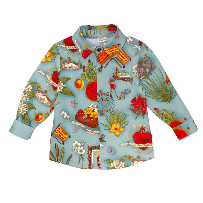 Male baby fall shirt 2022 spring autumn Korean version boy retro patterned shirt boy handsome flowers blouses