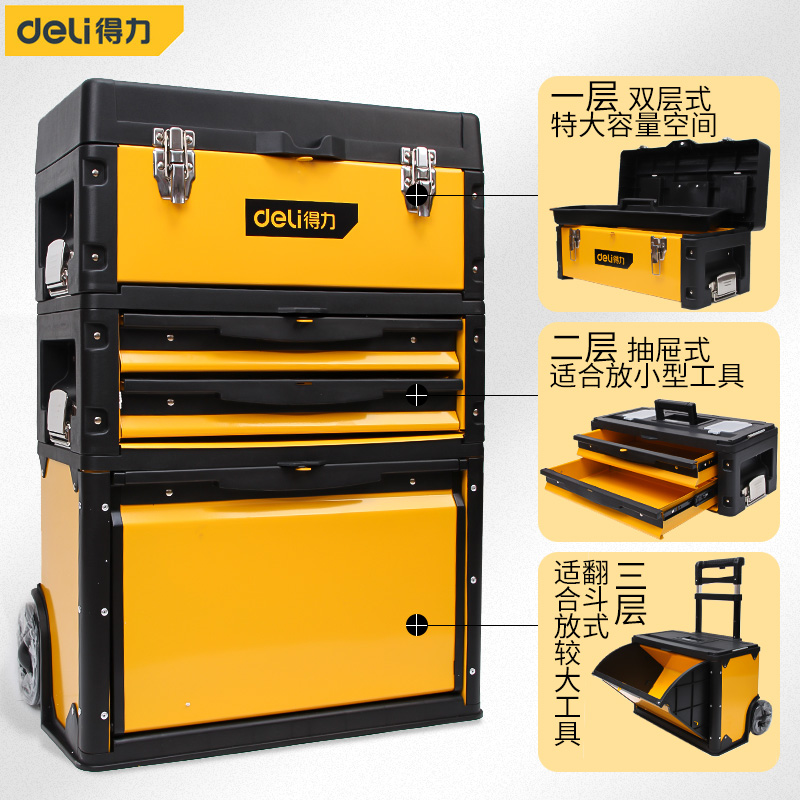 Deli trolley toolbox (DL-TS3C-20) Upgrade and strengthen iron box toolbox-14 inch Upgrade and strengthen iron box toolbox-20 inch Upgrade and strengthen three-layer iron box toolbox-