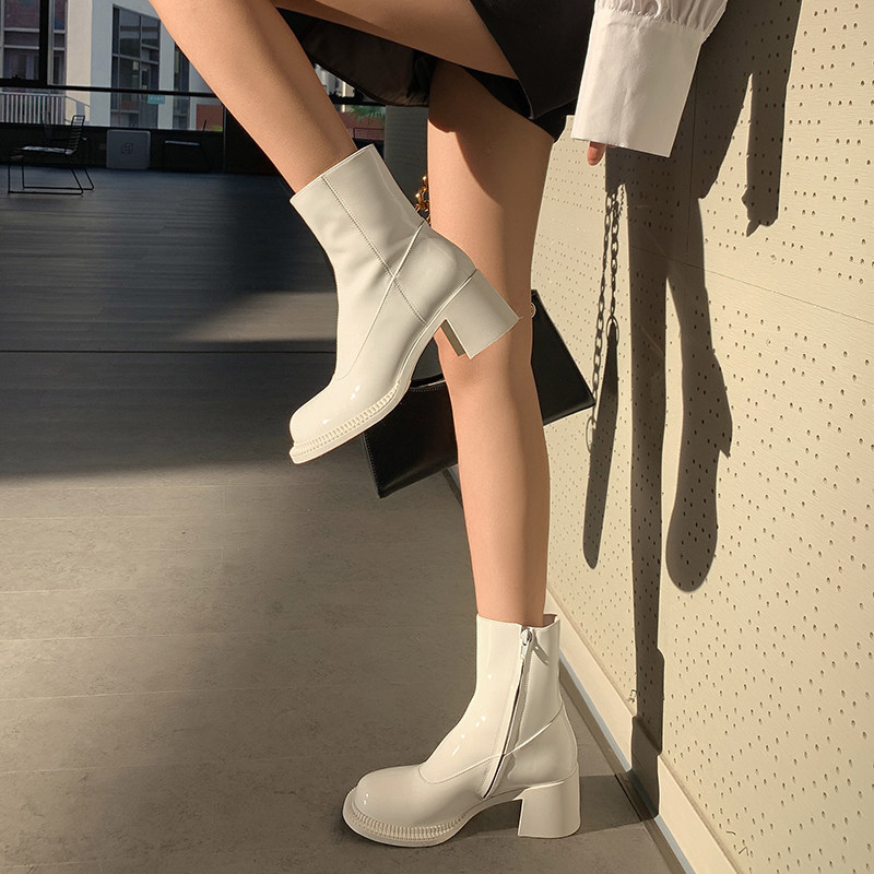 Brother Wang patent leather Martin boots women's 2022 new retro white boots thick heel Mary Jane big toe thick sole ankle boots