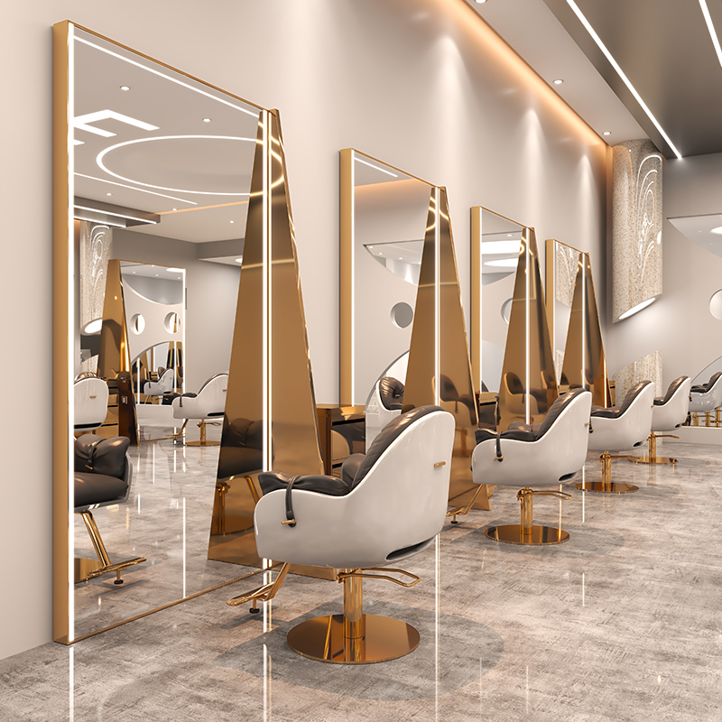 Gold Single-sided floor mirror Lighted gold Double-sided floor mirror Lighted silver Single-sided floor mirror Lighted silver Double-sided floor mirror Lighted rose gold Single-sided floor mirror Lighted rose gold