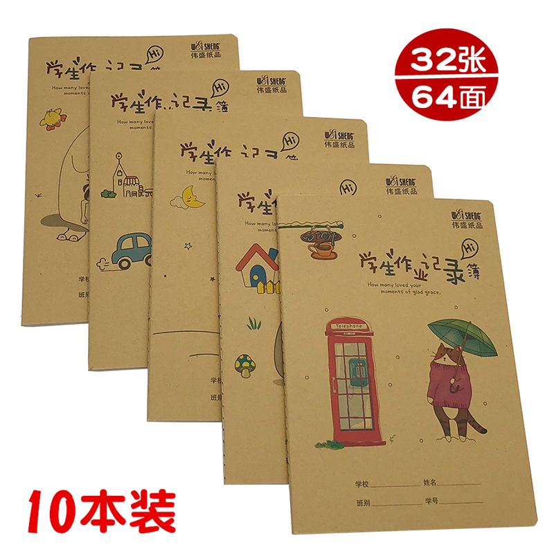 Weisheng primary school student homework registration book A5 thickened kraft paper cover homework record thin copy homework home school contact this homework record this coursework registration book 32 pages 64 sides thickened