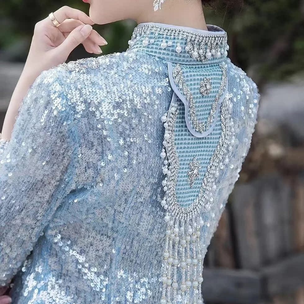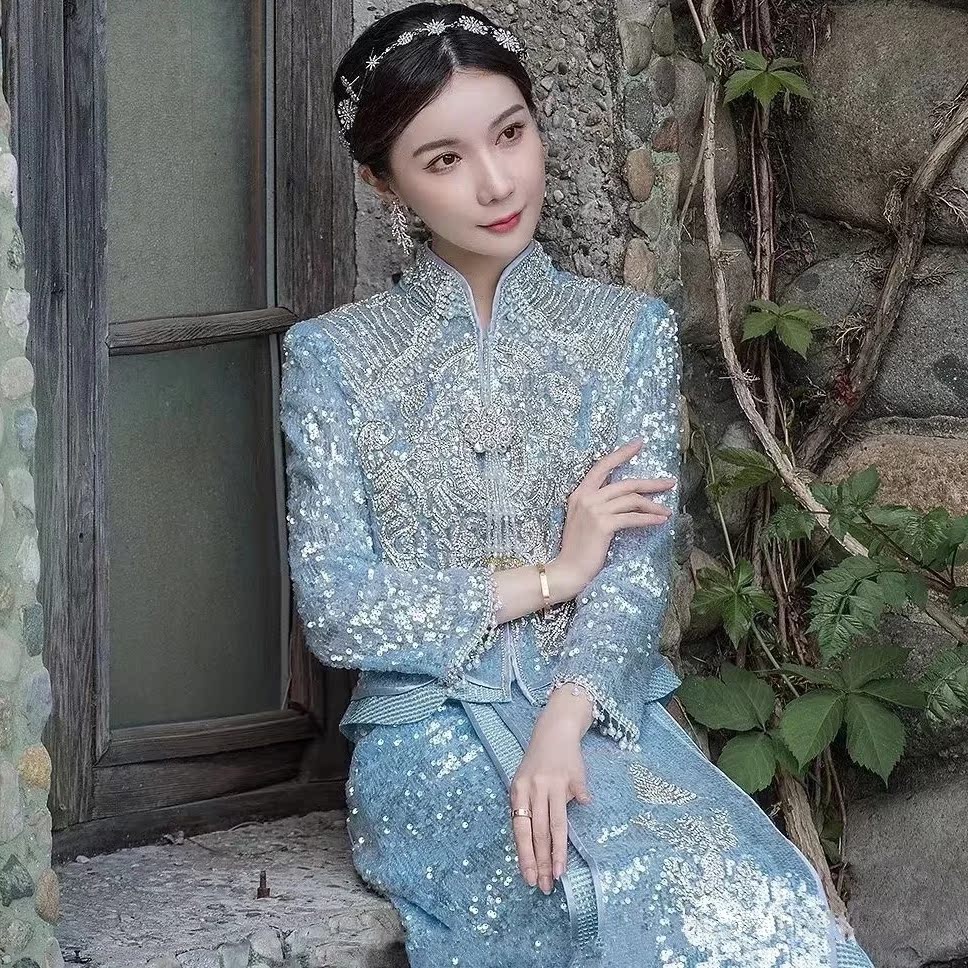 Ice Blue Show and 2021 new brides Summer Chinese-style wedding dresses Malay Out of the Cabinet