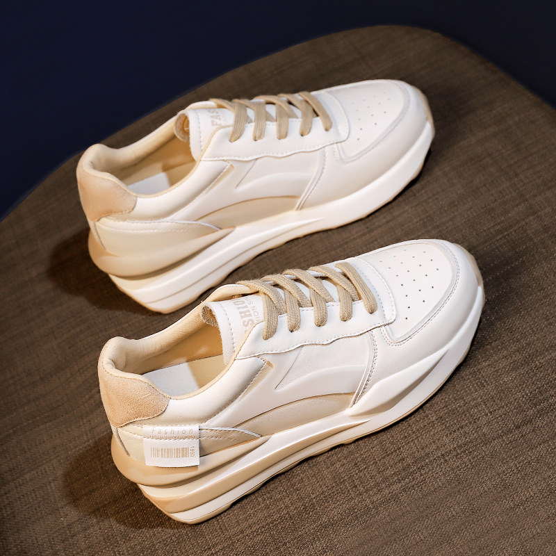 Goddess Unique Temperament Trend Versatile ~ New Leather Versatile Sports Casual Thick Sole Heightening Small White Shoes