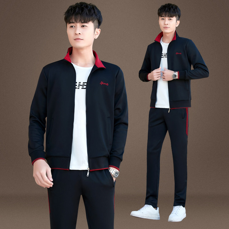 Jordano sportswear suit men's spring and autumn three-piece 361 long-sleeved stand-up collar cardigan jacket casual thick cotton