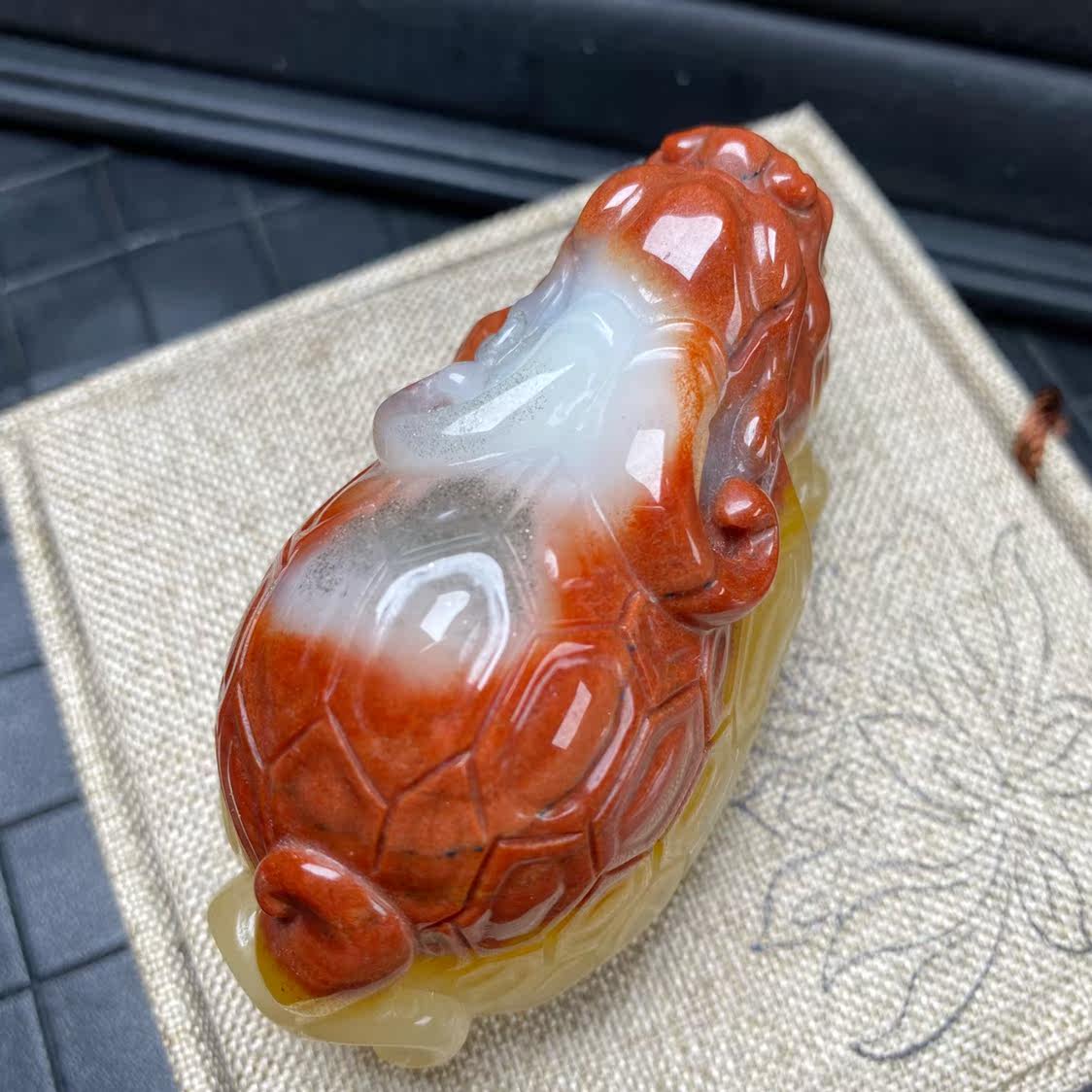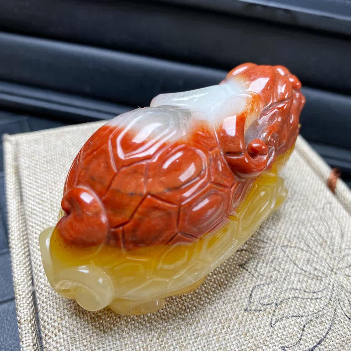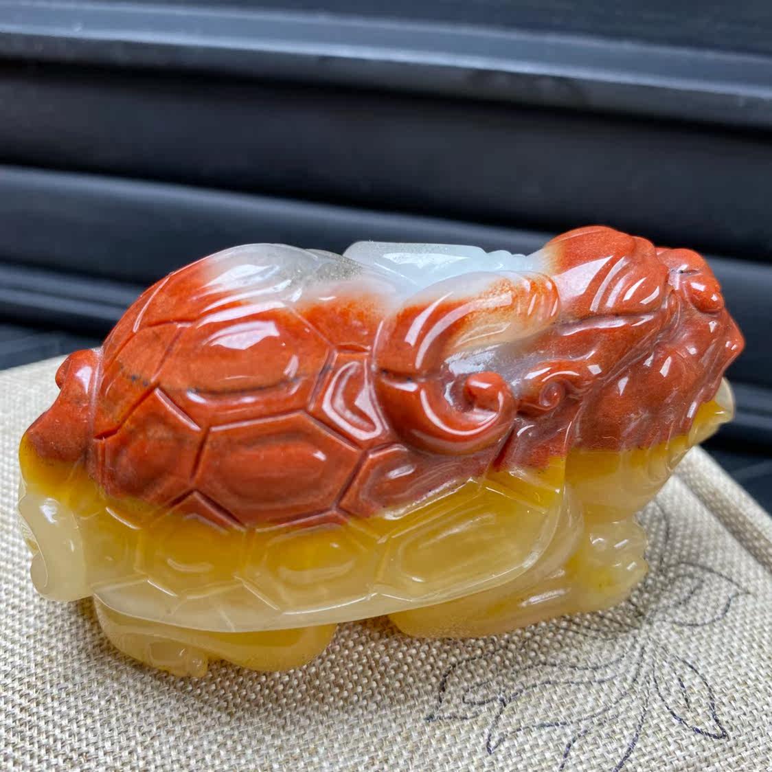Natural Yunnan Huanglong jade dragon tortoise handlebar playing with a dragon mausoleum tricolour gold sand and jade pendulum decorated with tea darling