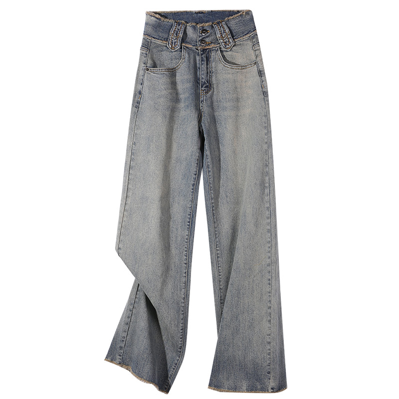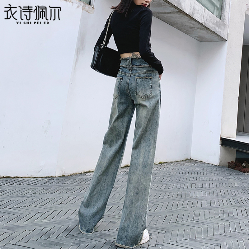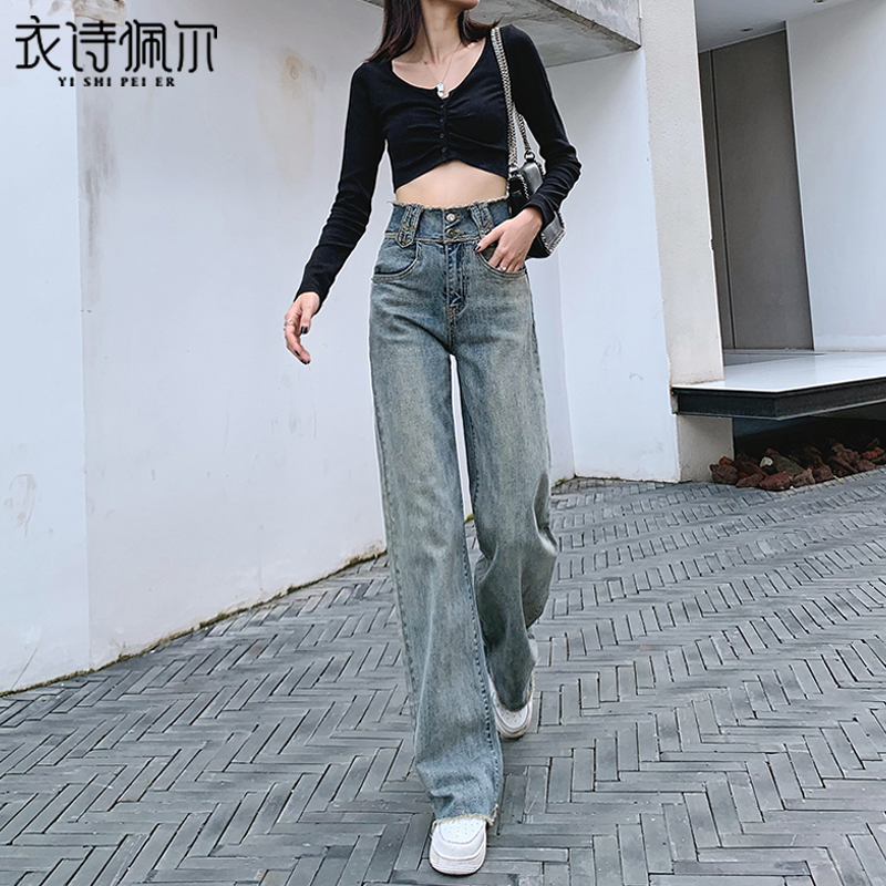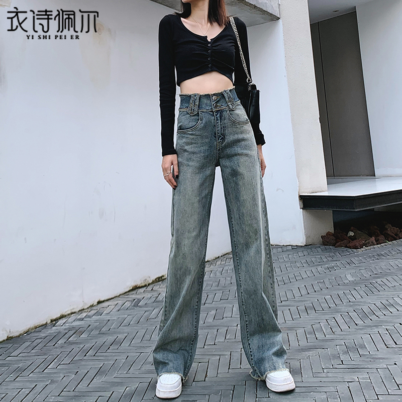 Retro high-waisted wide-leg jeans women's loose 2022 spring and autumn new nostalgic straight tube thin and sagging mopping pants