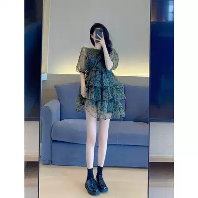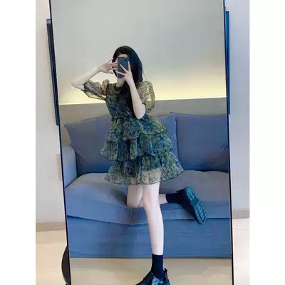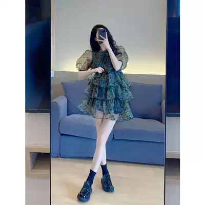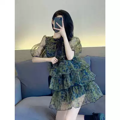 Puff skirt Women summer 2021 New sweet French tea break flower organza foam sleeve cake skirt dress