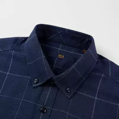 HLA Hailan Home button neck long sleeve casual shirt 2021 autumn new large plaid soft shirt men