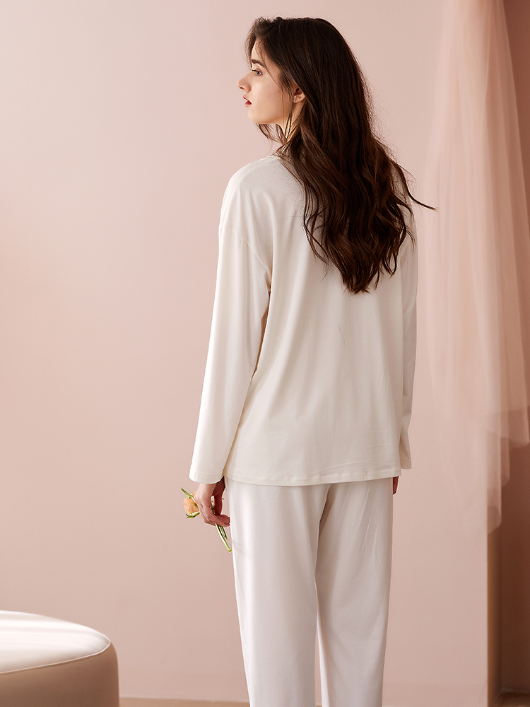 Sweet dream 2021 spring and autumn modal cotton women's pajamas long-sleeved white can be worn outside summer casual home service suit