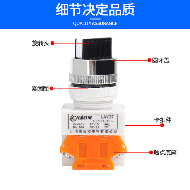 Wire cutting machine tool Electric special knob switch Two-gear four-foot switch pure copper electrocution mounting aperture 22mm