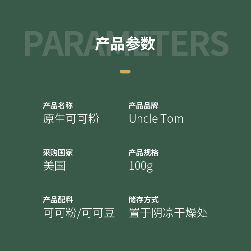 American Uncle Tom Raw Cocoa Powder without added sugar pure cacao Imports baking Jugouli powder Flushing Drink Unalkalising