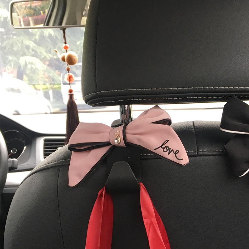 One pink headrest hook, one black headrest hook, one pink headrest hook, two black headrest hooks, two pink and one black headrest hooks, one navy blue headrest hook